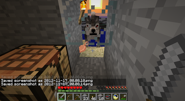 I began to dig a mine, but since I was high up on a hill, there was very little chance of me finding something useful like iron, and I realized my main purpose was to get away from all those scary sounds.